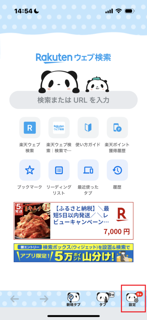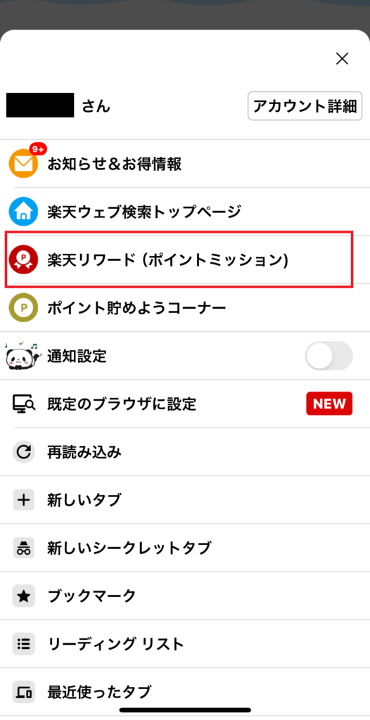 楽天ブラウザアプリの「デフォルトブラウザ」を「楽天」に設定すると、アプリを起動するだけで、週1回1ポイント獲得できます。