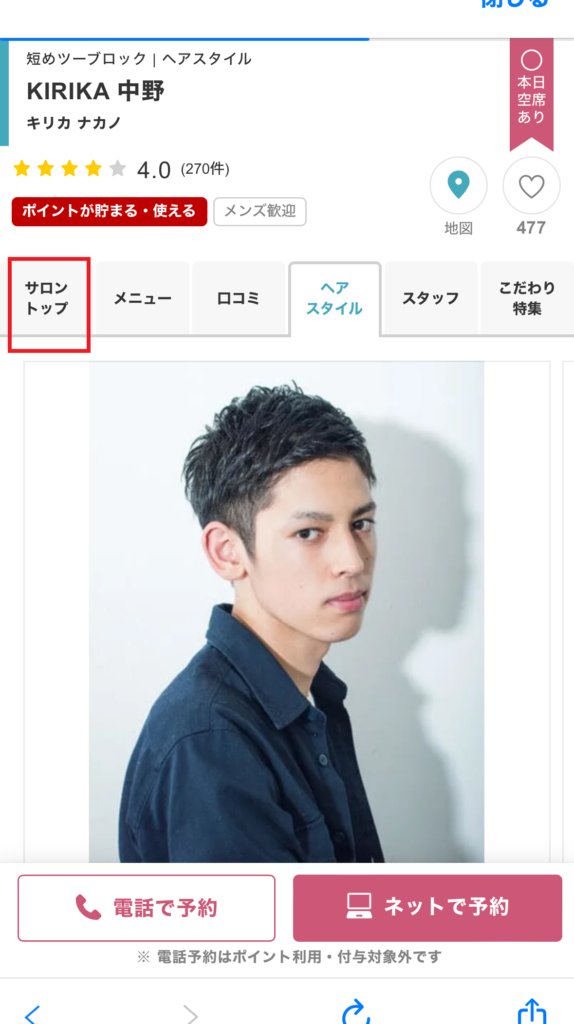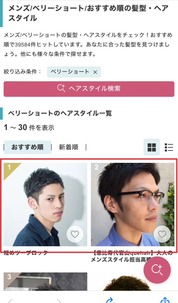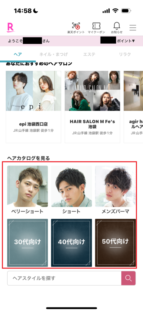 ①楽天ビューティアプリを起動し、アプリ下の「ヘアカタログを見る」から1つ選びます。