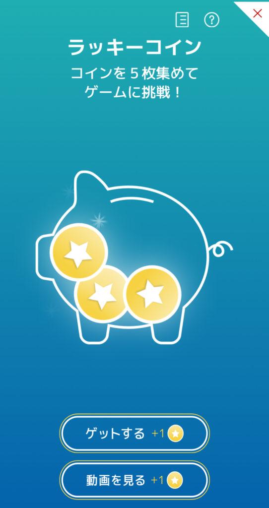 また、このラッキーコインですが、動画を見るをクリックし、15秒程度の動画を見ることでも1枚獲得できます。
